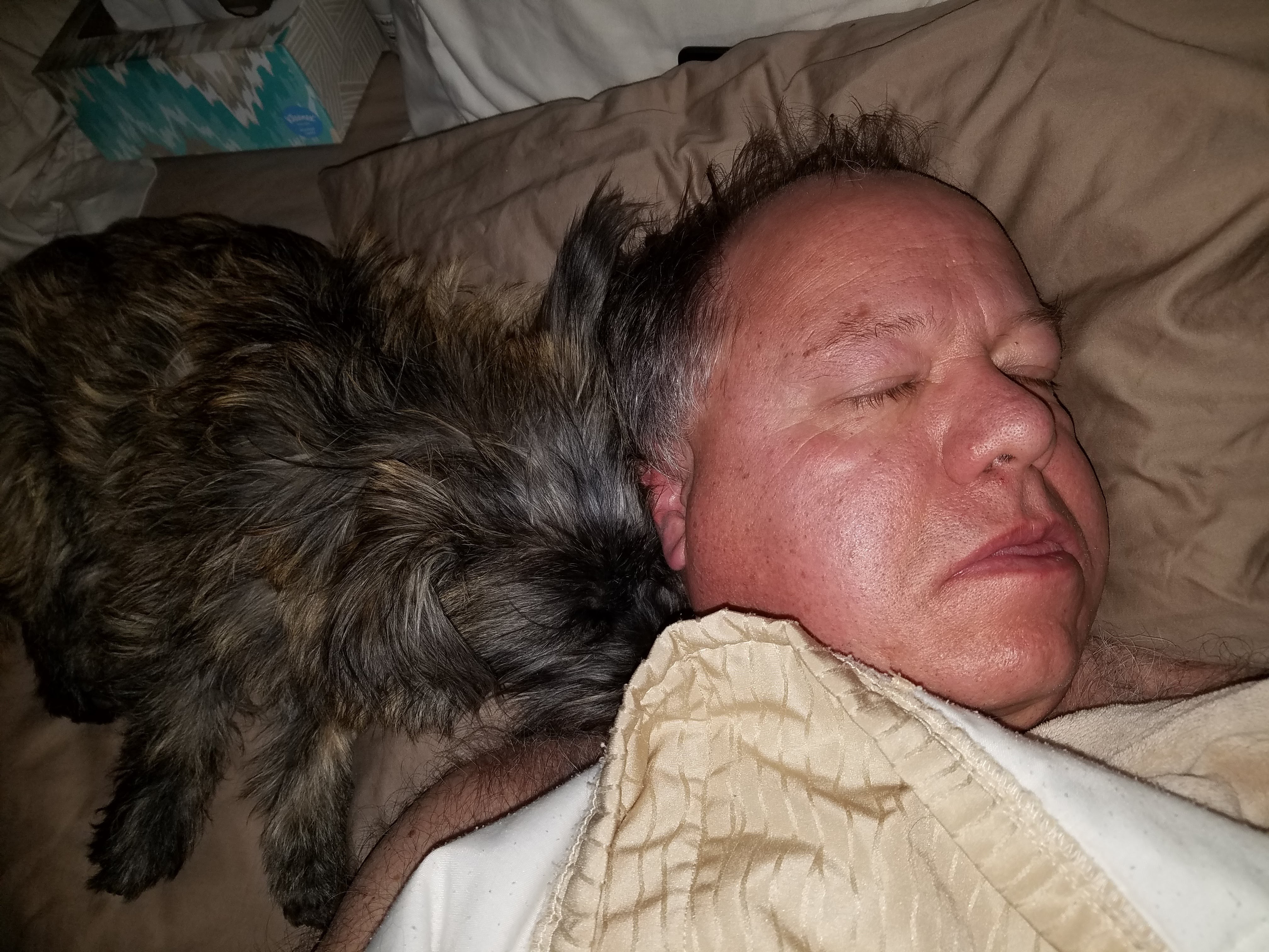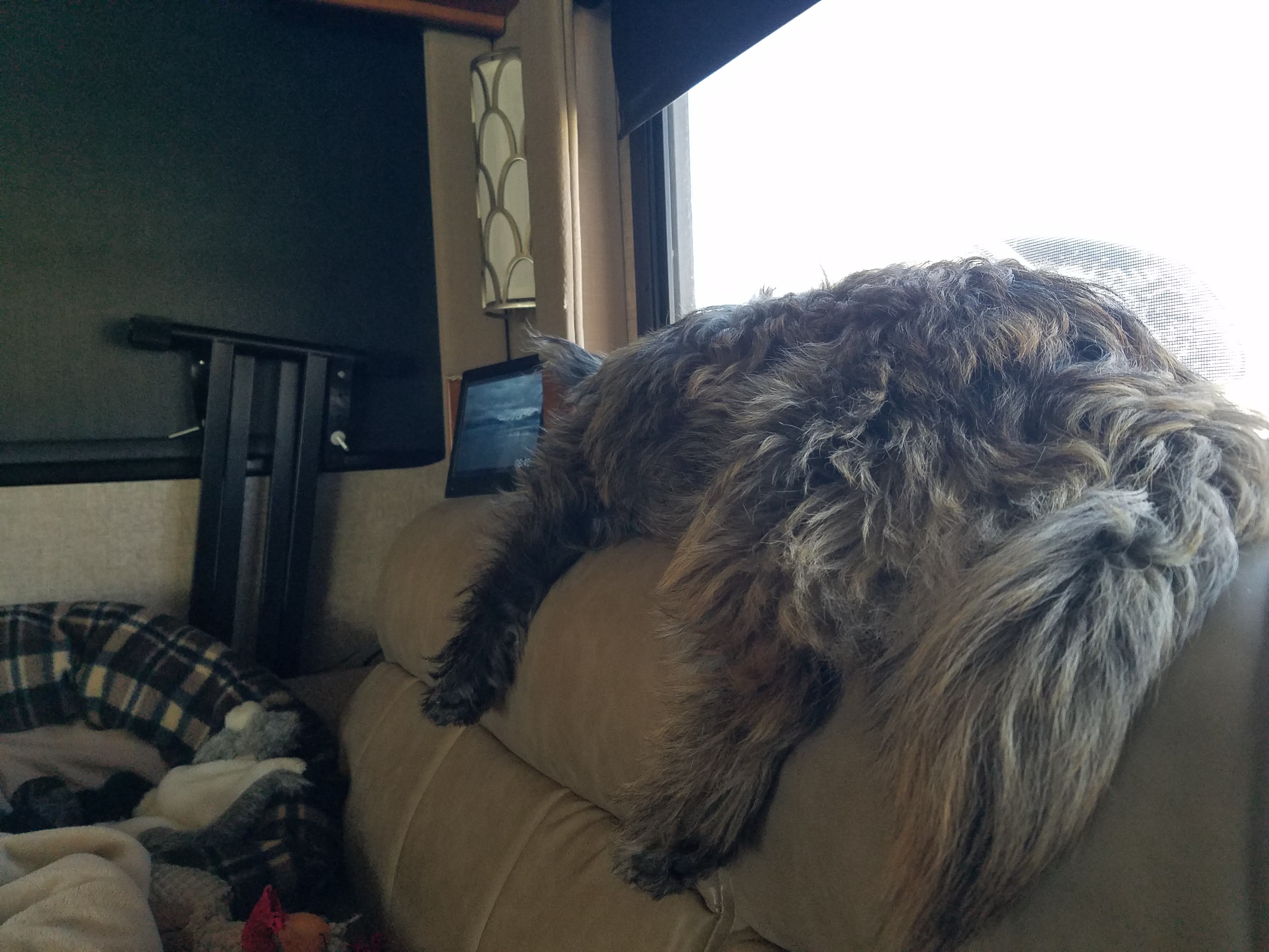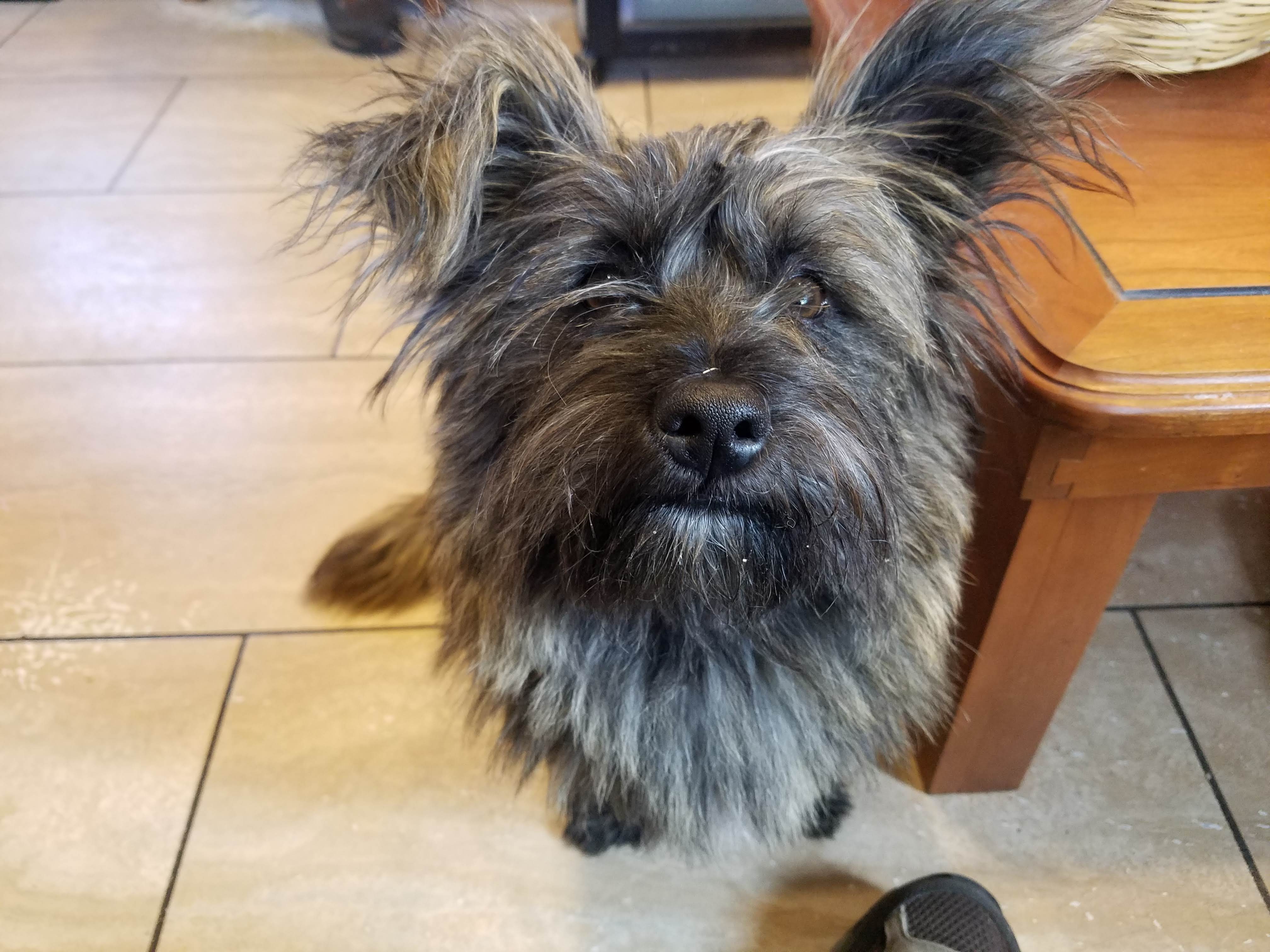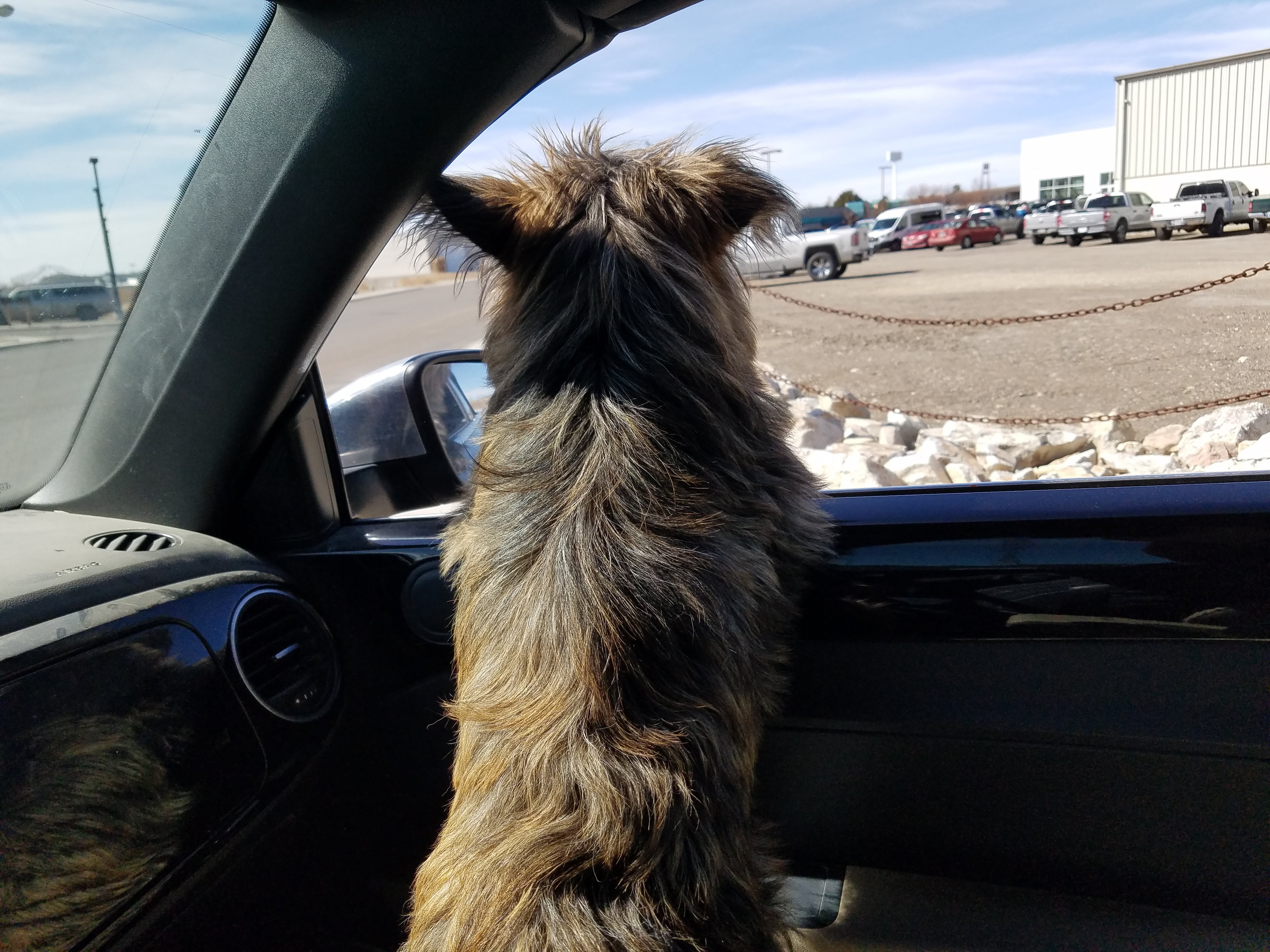 MacKenzie is a mixed breed terrier who seems to be a young adult. From his appearance, he seems to have quite a bit of Australian Terrier in him. He is a surprisingly well-adjusted and well-behaved dog (albeit with all the energy of youthfulness). He’s about 16 pounds, slightly larger than Scooter was. He loves to play fetch at the dog park, go on walks, ride in the car, and does a great job staying close to me when roaming around in the desert.