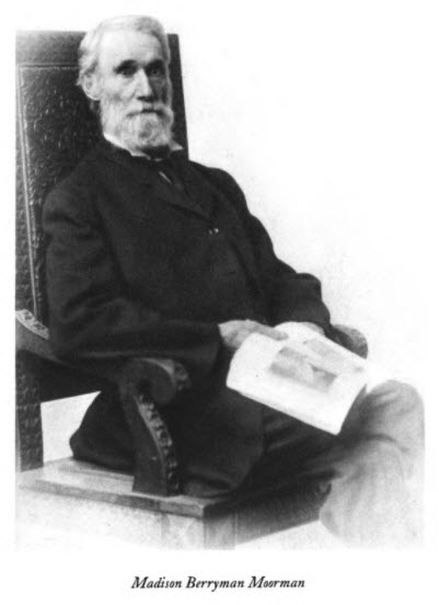 “An early start and continued exertion enabled us to pitch our tent twenty miles farther on the road. Eight or nine miles brought us to a creek with very steep and muddy banks, rendering it exceedingly difficult of crossing, so much so that several hundred wagons had accumulated before we were off. In a distance of a few miles several other little creeks were passed over upon toll bridges. One belonged to some frenchmen, who had Indian wives.—They were well fixed, good farms and a sawmill. Across one of the creeks were two bridges, such as they were, belonging to two Indian youths who were dressed very gaudily. It was amusing to witness their spirit of rivalry. One asked five cents and the other ten. The one who asked ten cents would point out the defects of the others bridge, the rival would speak of the difference of price. We decided upon the best bridge and over we went leaving them to settle the difficulty as best they could. About fifteen miles from the Baptist mission is one belonging to the Roman Catholics. From appearances, it dates further back than the other and seemed to be in quite a flourishing condition. A great many of the Potawotamies live around and have nice fields. Game, in the way of wolves, prairie chickens, Plovers, gofers and Rattle snakes! abound, especially the latter. The number we assassinated was from three to five a day taking no pains to find them nor killing all we saw. The weather was pleasant—all were well and cheerful. We felt that the prairie was our home and would be for some time to come. It was our couch and our dependence for the sustenance of our mules. How pure and balmy the air;—how brightly shone the sun and how transporting was the scene!” – Madison Berryman Moorman. Madison’s diary can be viewed here. Madison’s portrait is found in the front of his published journal.