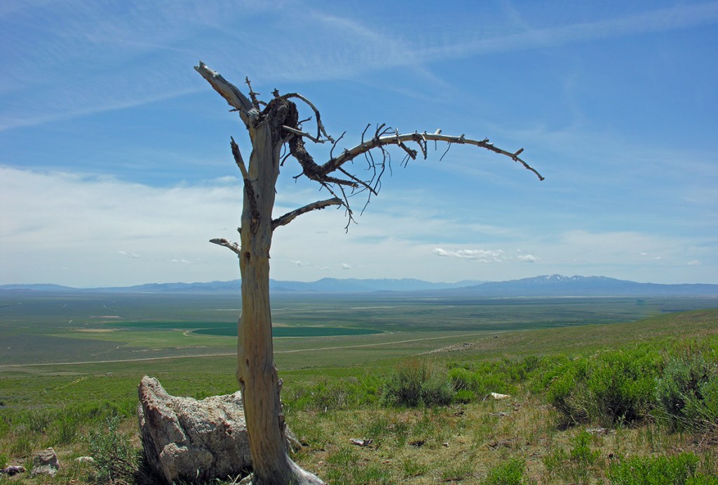 “Our road leads south, along the foot of the mountain, at the top of which is snow, and where we found a lot of warm springs, that are great curiosities. These springs are of different sizes and shapes; some are round like a kettle; others are square. The heat from this water ranges from blood to boiling heat – one of them thirty yards square, the water of which boils all the time; we called it the boiling lake. Grass grows close to the edge of these springs and the water in them is very clear, some of them being from twenty to thirty feet deep. Taking this valley altogether, it is the finest we have seen in this great basin, and far exceeds the Salt Lake Valley; plenty of water and grass and some timber. After traveling twenty miles, we again encamped at the foot of this mountain, near a large gap.” – Anonymous. At this point the group is traveling south along the eastern edge of the Ruby Mountains on the Hastings Cutoff. The writer of this diary is unknown, but it is identified with a group of emigrants referenced in the diary as the “Fayette County Boys” and can be downloaded from the OCTA collection at https://www.octa-journals.org/merrill-mattes-collection/feyette-county-boys-enroute-to-california. The photo depicts Ruby Valley looking southeast from the base of the Ruby Mountains. It was taken by Ralph Maughan and was downloaded from https://lh5.googleusercontent.com/p/AF1QipMmYXQlrI2zc4wVthhu0TH0Ez7yR3N7XOTF2g28=h1440.