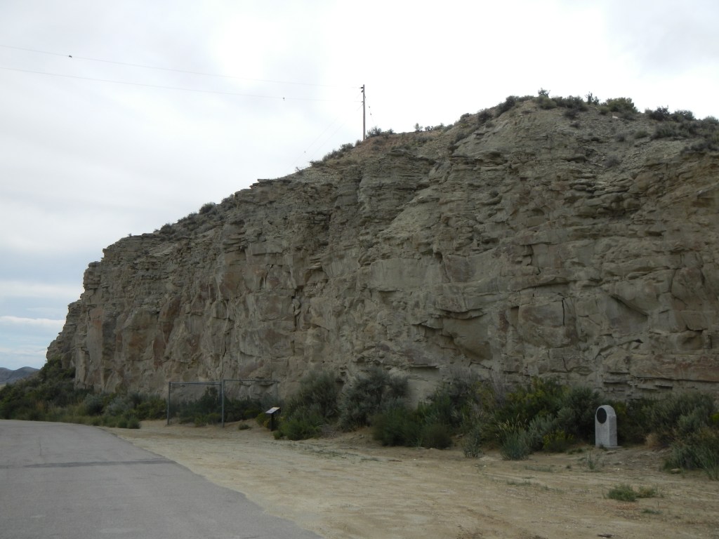 Returning now to the Sublette Cutoff crossing of Green River we find another place where emigrants enjoyed carving their names – Names Hill (GPS coordinates -110.188, 42.177). You can find descriptions of several markers on the Historical Marker Database at https://www.hmdb.org/m.asp?m=162509 and the accompanying picture comes from that site as well. The Wyoming State Historical Society article at https://www.wyohistory.org/encyclopedia/names-hill-oregon-trail-inscription-site also provides interesting background information.