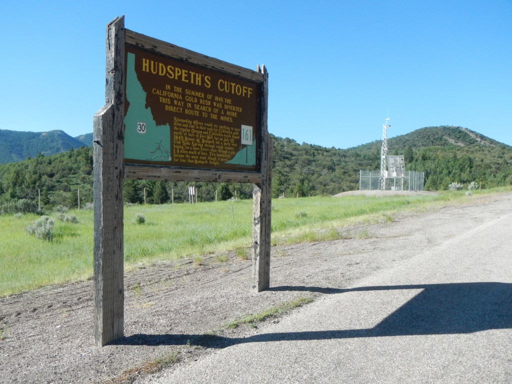 Hudspeth’s Cutoff was developed to “cut-off” the loop up to Fort Hall and reconnect with the main California Trail near City of Rocks. Highway 30 follows the approximate route of about the first third of the cutoff. You’ll see an Idaho historical marker (GPS coordinates -111.917, 42.630) along that route. The Historical Marker Database has the accompanying photograph at https://www.hmdb.org/m.asp?m=106774.