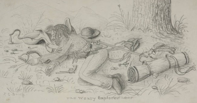Jesse Quinn Thornton wrote about the Donners in his 1849 book (https://babel.hathitrust.org/cgi/pt?id=njp.32101074865070&view=1up&seq=15&skin=2021). In the book he also described how one of the men associated with Lewis Keseberg had fallen behind (or been abandoned): “Hardcoop came to Mr. Eddy, and informed him that Kiesburg had again put him out of the wagon—… and he concluded by requesting Mr. Eddy to carry him in his wagon, as it was utterly impossible for him to travel on foot. Mr. Eddy replied that they were then in the sand, and if he could in some way get forward until they got out, he would do what he could.… As soon as they got into camp, inquiry was made for Hardcoop. Some boys who had been driving cattle stated that they had seen him last sitting under a large bush of sage, or artemisia, exhausted and completely worn out. At this time his feet had swollen until they burst….” The accompanying drawing of a weary explorer (https://hdl.huntington.org/digital/collection/p15150coll7/id/5110) is by J. Goldsborough Bruff from 1850.