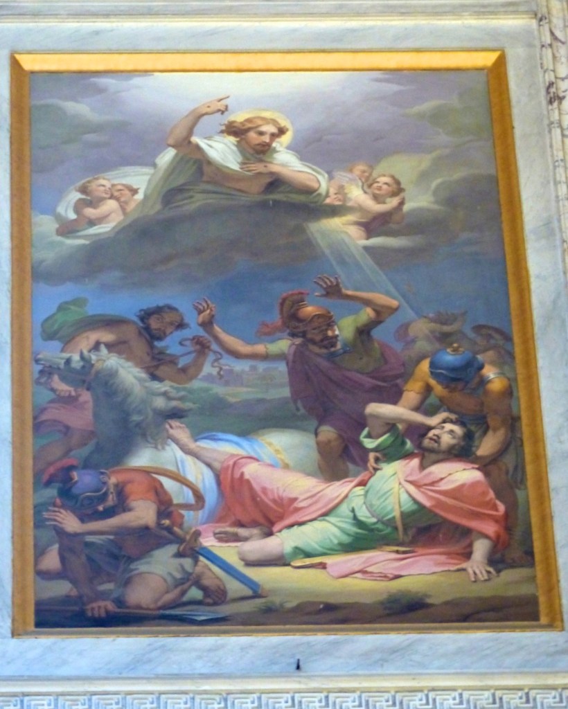 The second fresco painting from the Papal Basilica of Saint Paul Outside the Walls (and photographed by the Hermit’s Door) depicts Paul’s encounter with Jesus on the road to Damascus.