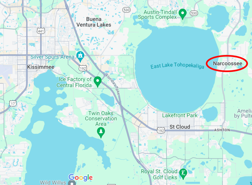 Narcoossee was established in 1884 by real estate developers Nelson Fell and Walter Davidson. They surveyed and sectioned off 2,000 acres of newly purchased frontier land and advertised it in England as lots for retirement and agricultural ventures. Many of the early settlers of Narcoosee came from England.