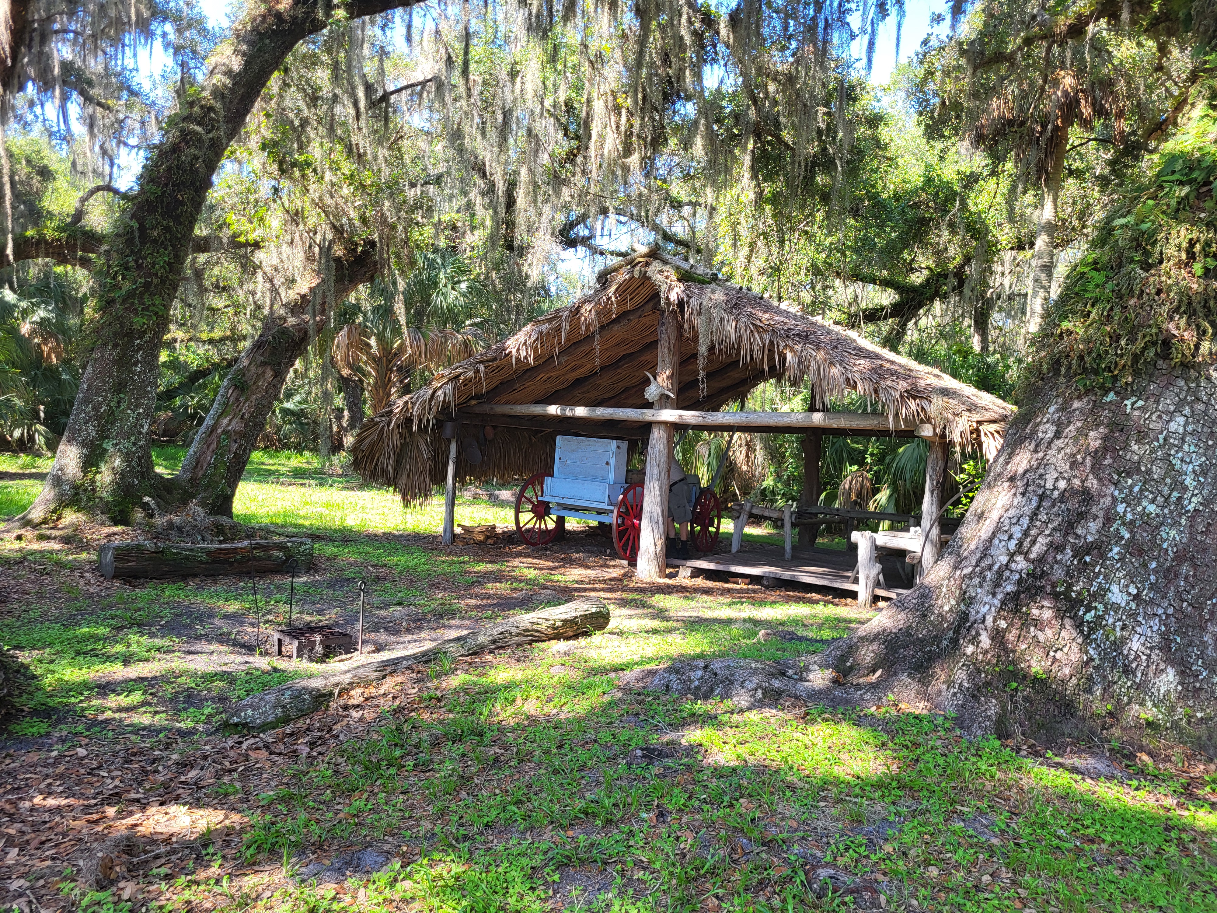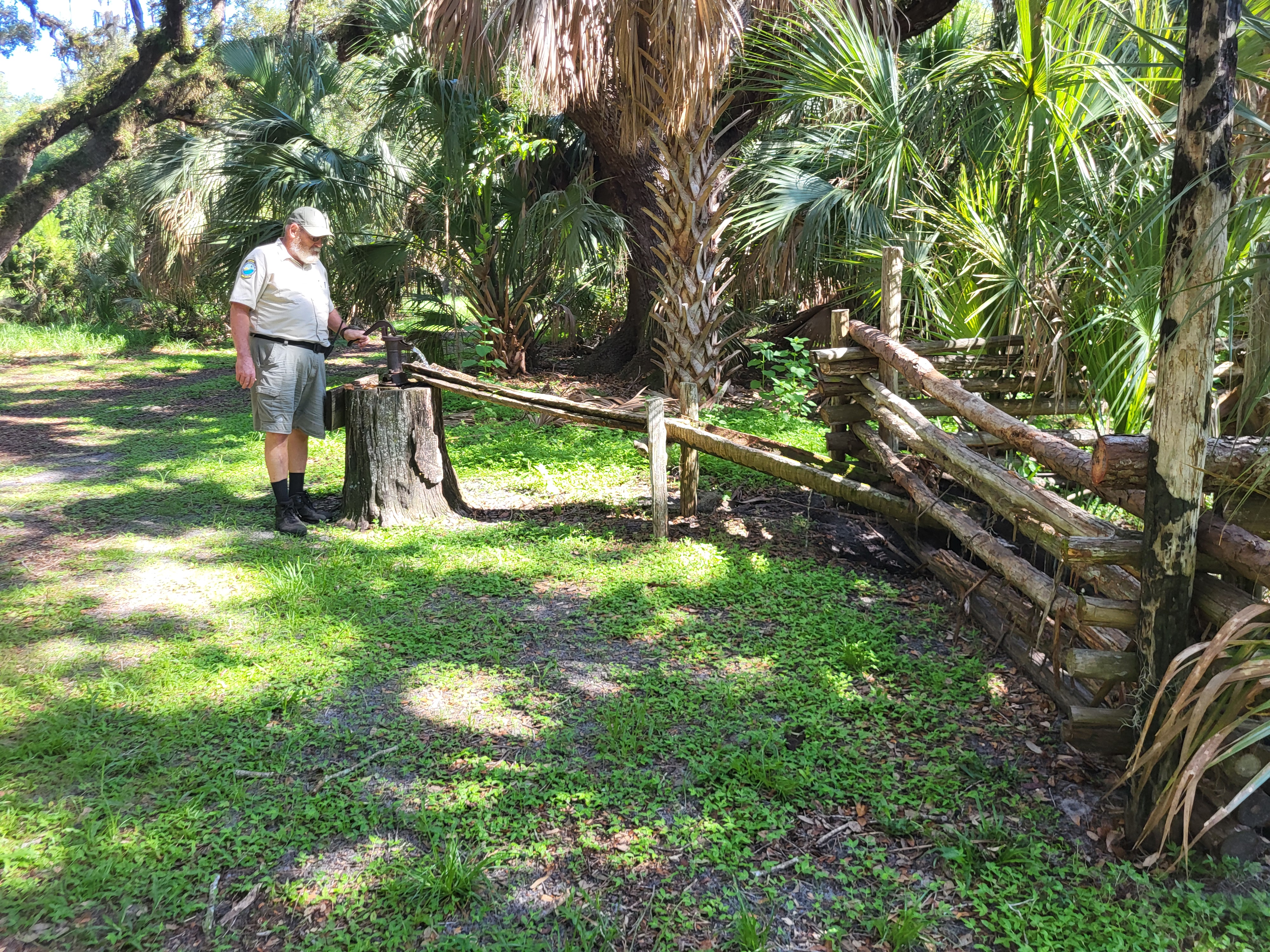 My primary reason for visiting the park was to see the circa 1876 Cow Camp that they have constructed and use for interpretive programming. The Cow Camp is primarily used during the fall, winter, and spring, as summer’s are quite hot in Florida and summer is considered the off-season for this state park. When I arrived, though, the person at the entry point informed me that the rangers who do the Cow Camp programming were present in the park today and he radioed them to meet me at the Camp Store.