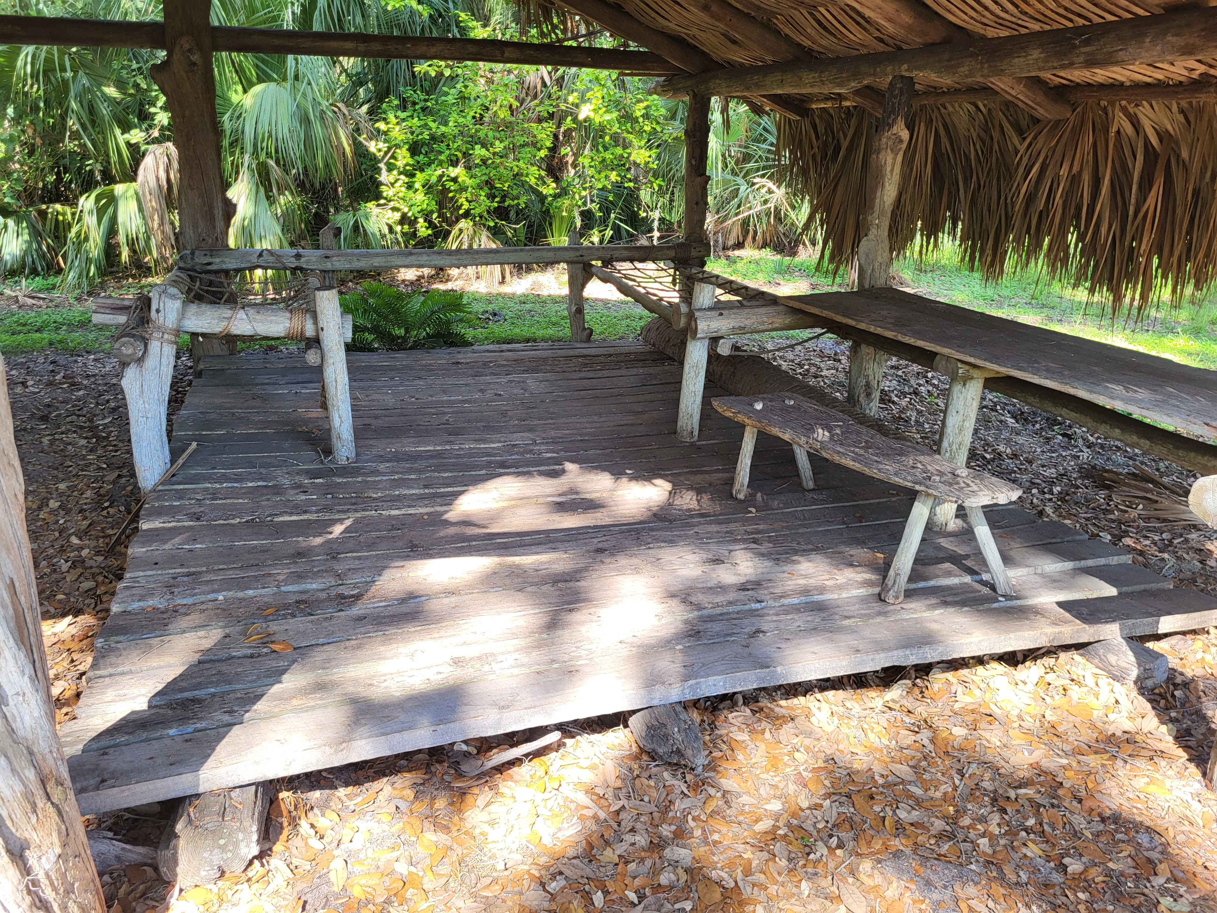 The Cow Camp at Lake Kissimmee State Park is a typical, representative structure of a cow camp. They were built throughout the swamps by cowmen who would set out to hunt for their open-range cattle each year to drive to market. The cow camps were built about a day’s ride/drive apart along the swamp route they would travel. The structure provided a place to spend the night, sleeping, cooking, mending, and entertaining themselves.