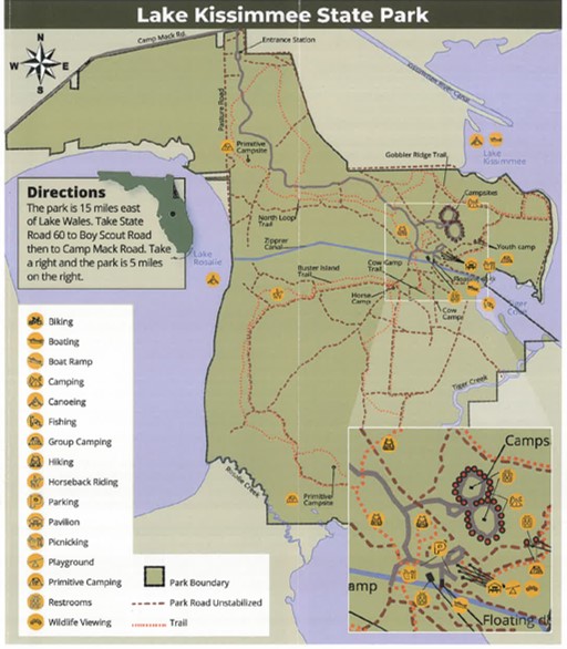 For this week’s blog – my “in-between the Life of Paul” week – I’d like to tell you a little about Lake Kissimmee State Park. Lake Kissimmee is the third largest lake in Florida. The lake itself lies in Osceola County, but the state park that bears its name is in adjacent Polk County. The only direct lake access is via a dirt road that goes through the Youth Camp.