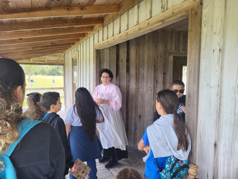 On Education Day, many of our interpreters will be on hand to tell their tales to the attending school children and chaperones, as shown here in our Florida Cracker house.