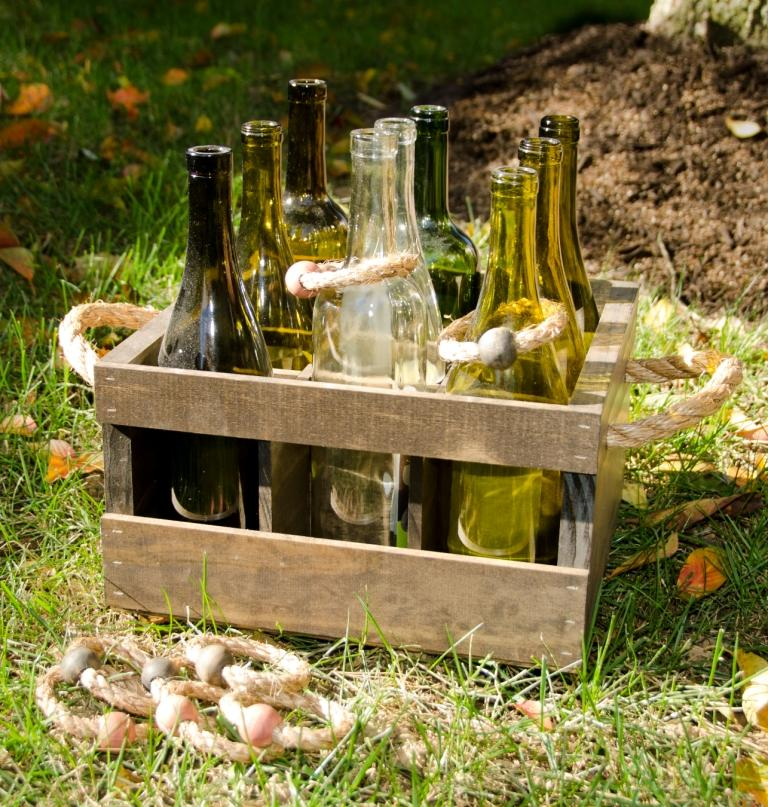 One final game is a ring toss game using old wine bottles and twine covered bamboo rings.
