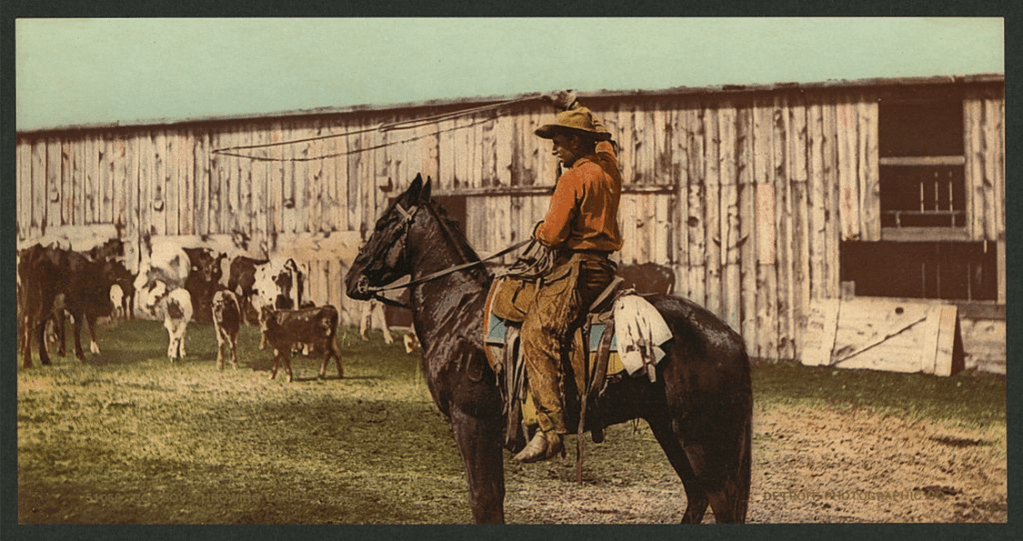 I have a bull made from a sawhorse covered with sloth and fitted with a plastic head. Students try their hand at throwing a lariat over the bull’s head to lasso it.