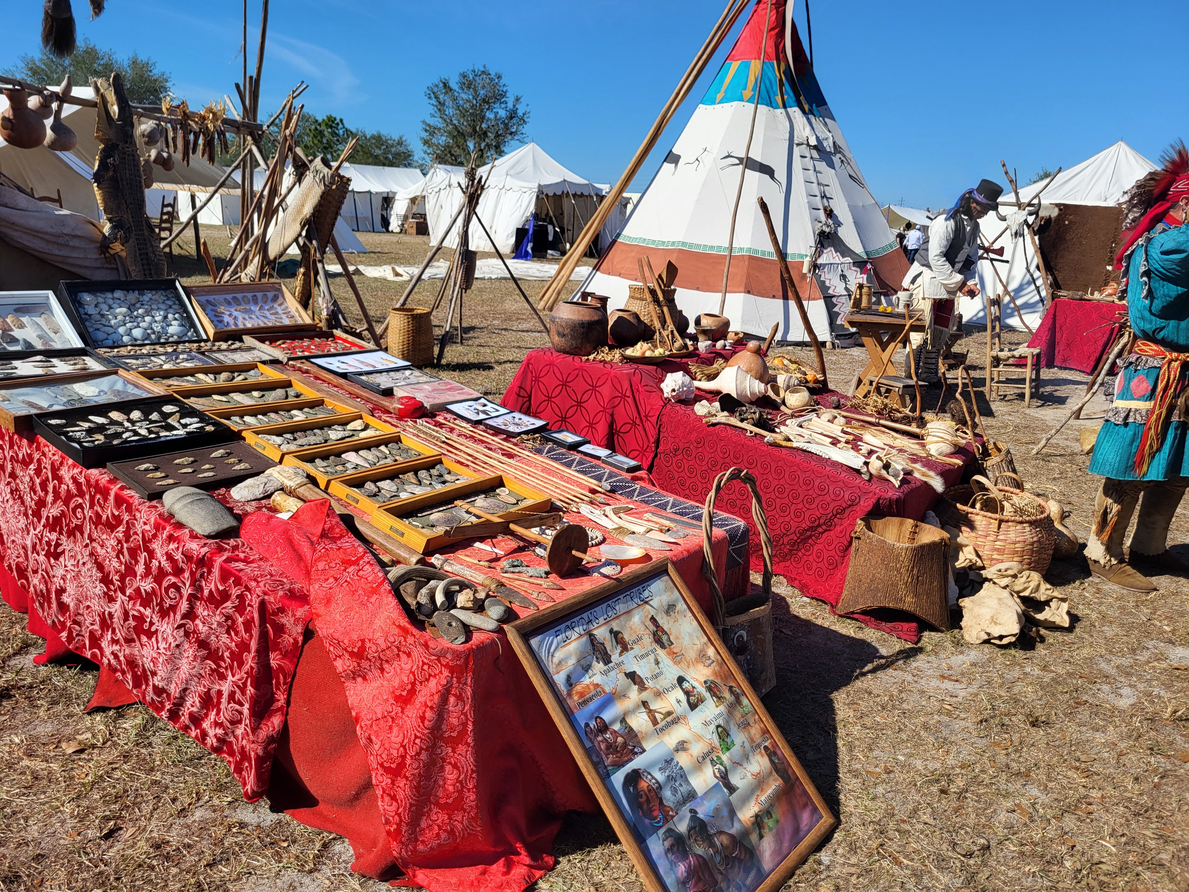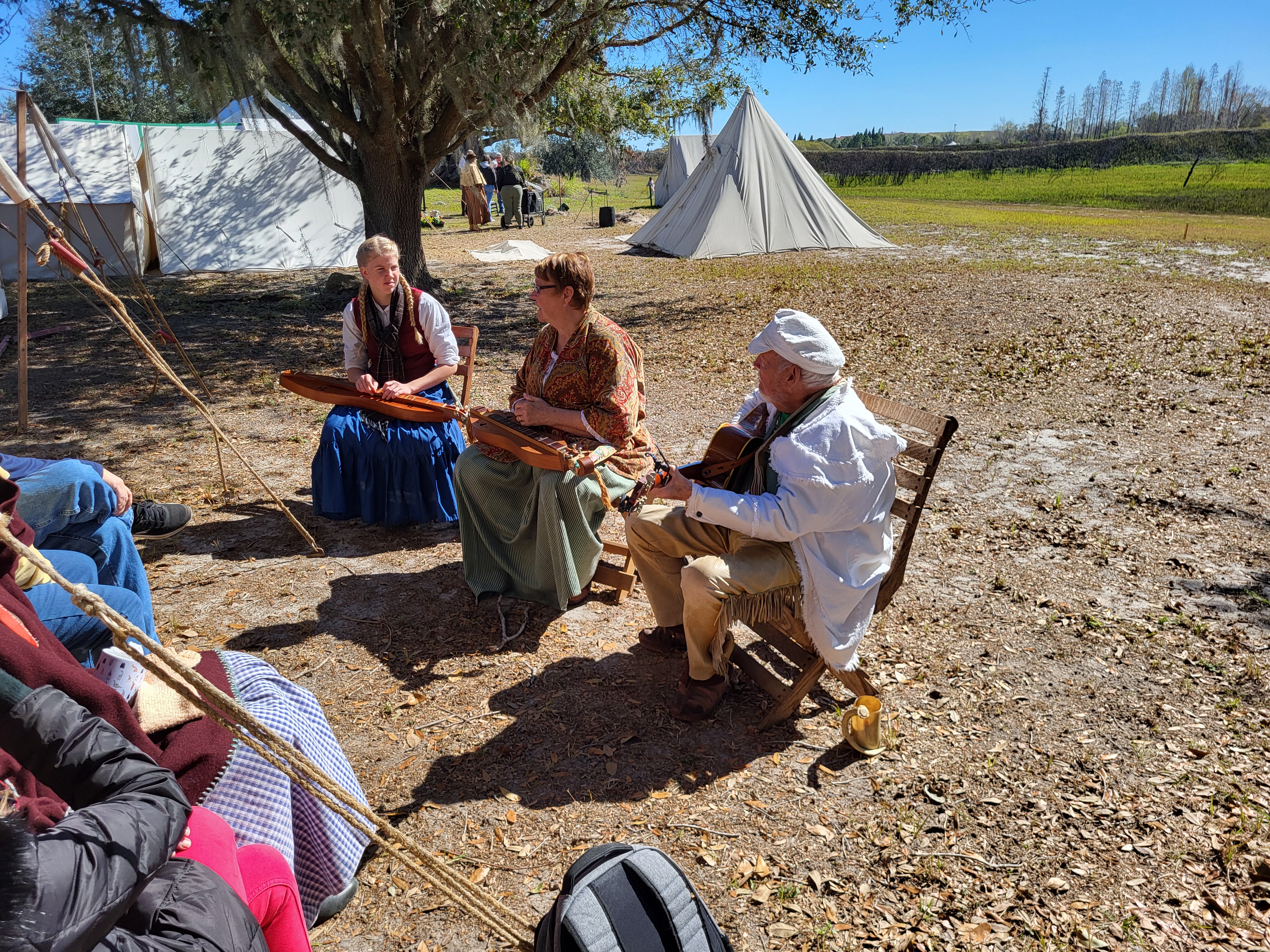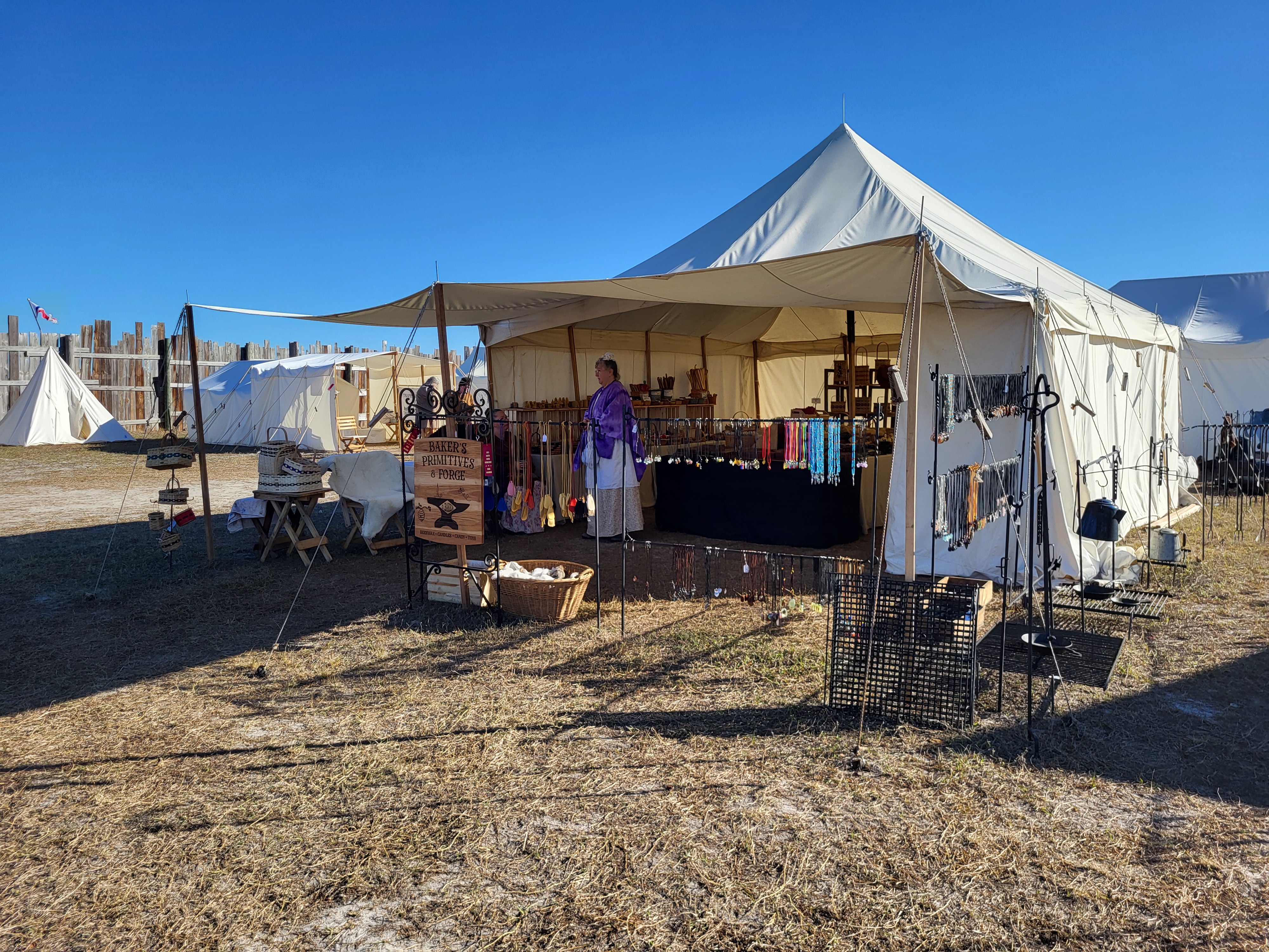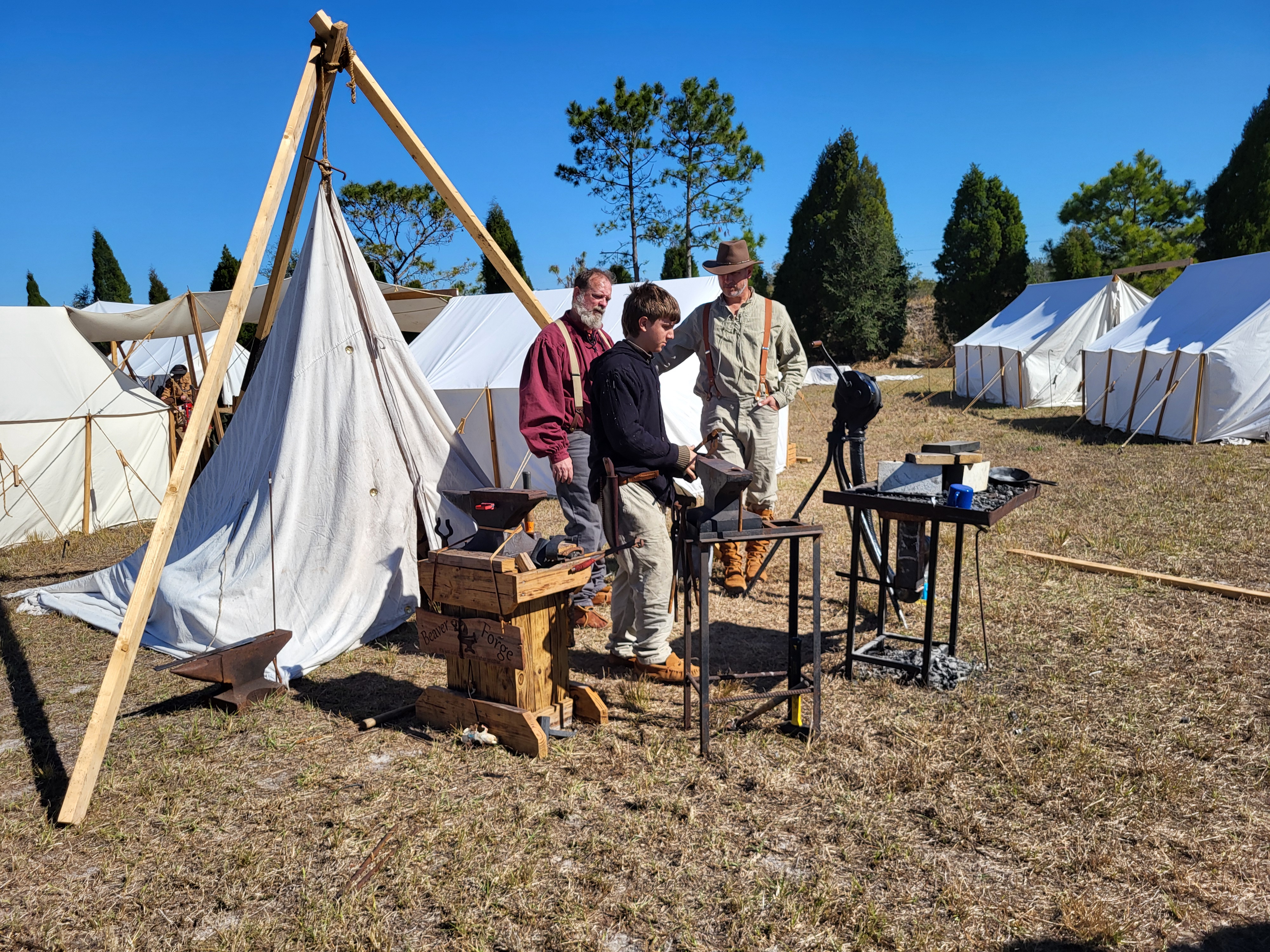 The Rendezvous is hosted by the Florida Frontiersmen and has just completed its 53rd annual meeting. According to their website description, “Take a trip back in time. Come see a living portrayal of pre-1840 America. It has approximately 1400 participants who are dressed in clothing and staying in tents and shelters that would have been seen in pre-1840 America. Visitors will enjoy a program of music, games, and see artisans demonstrating crafts such as flint knapping, broom making, blacksmithing, soap making, weaving and more. There will be vendors for food and pre-1840 merchandise for sale.”