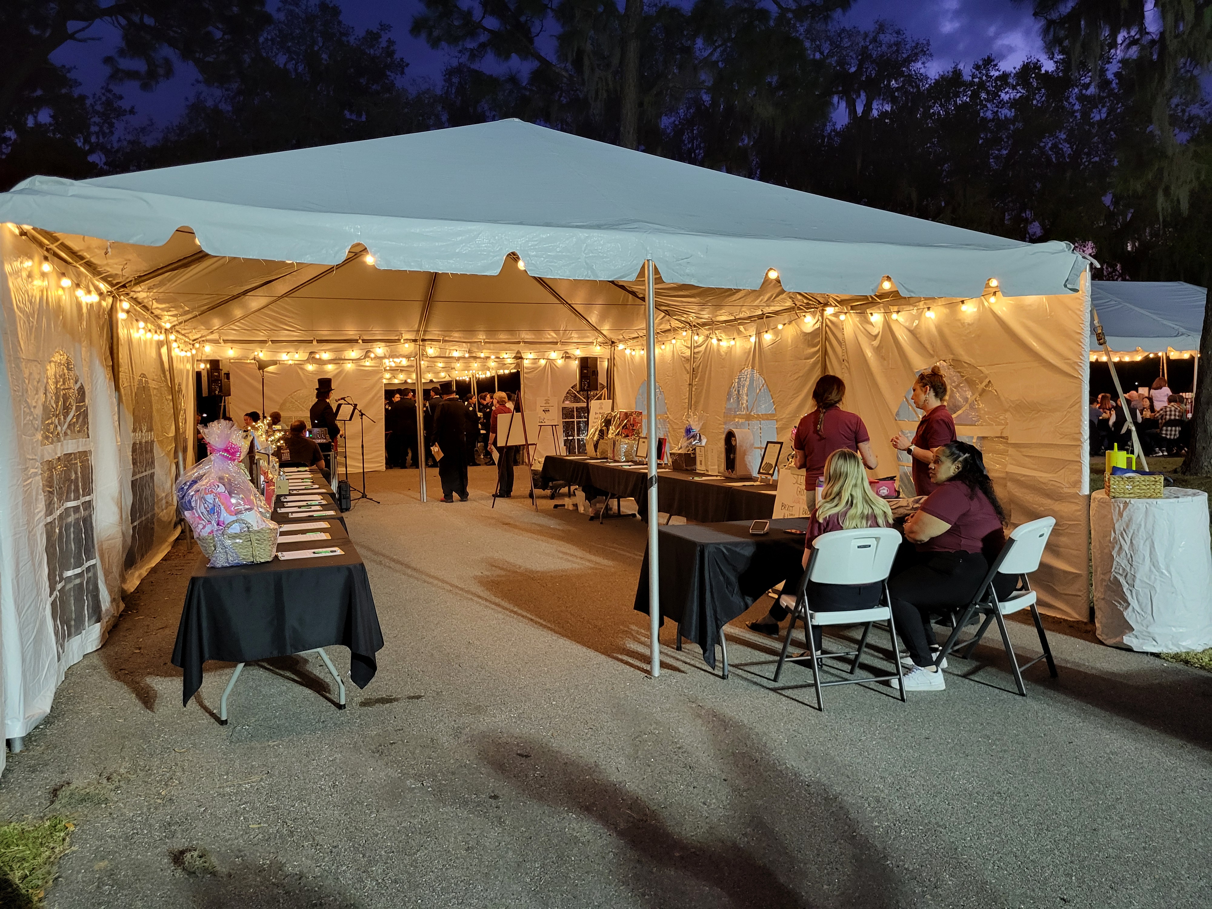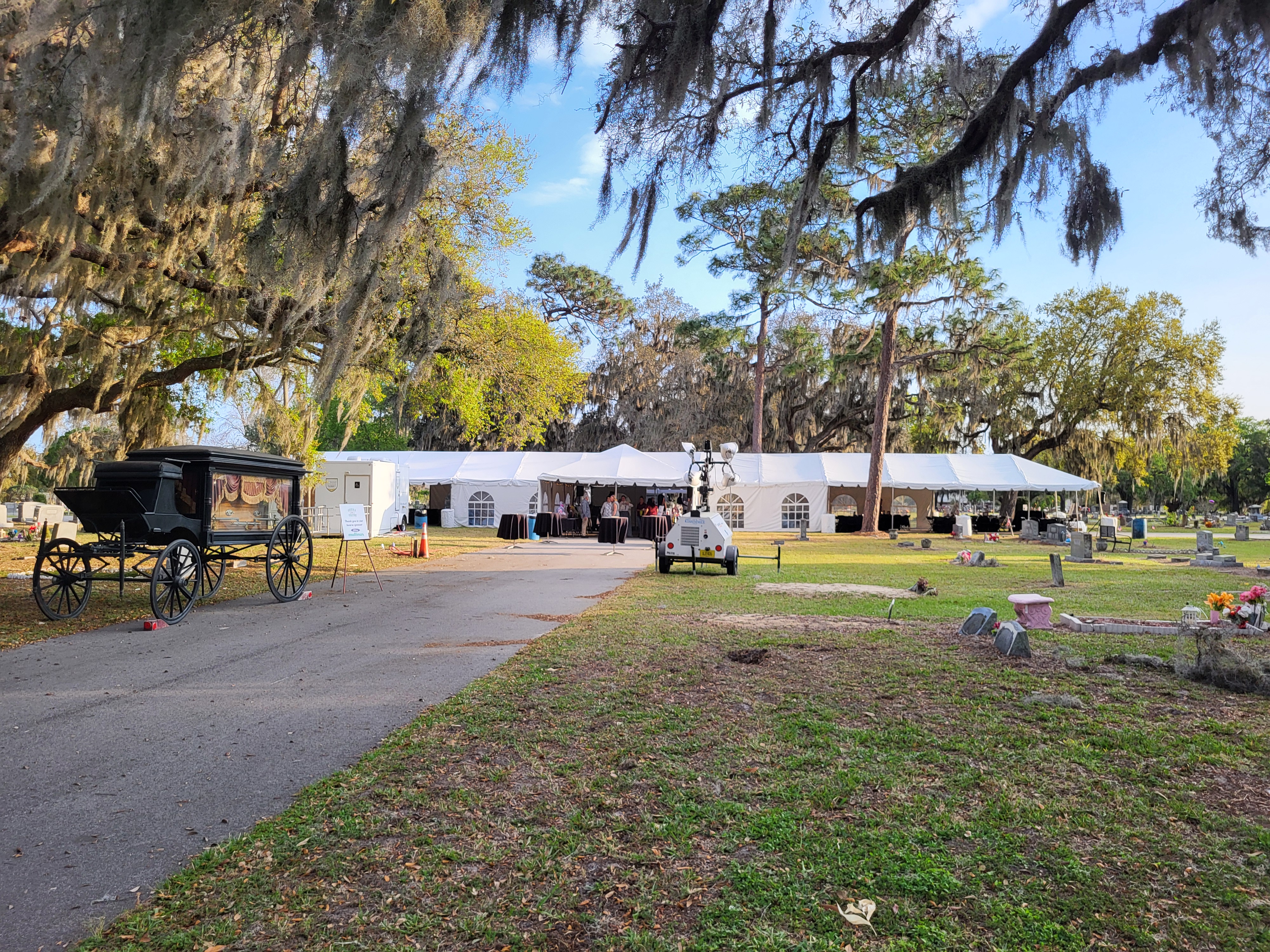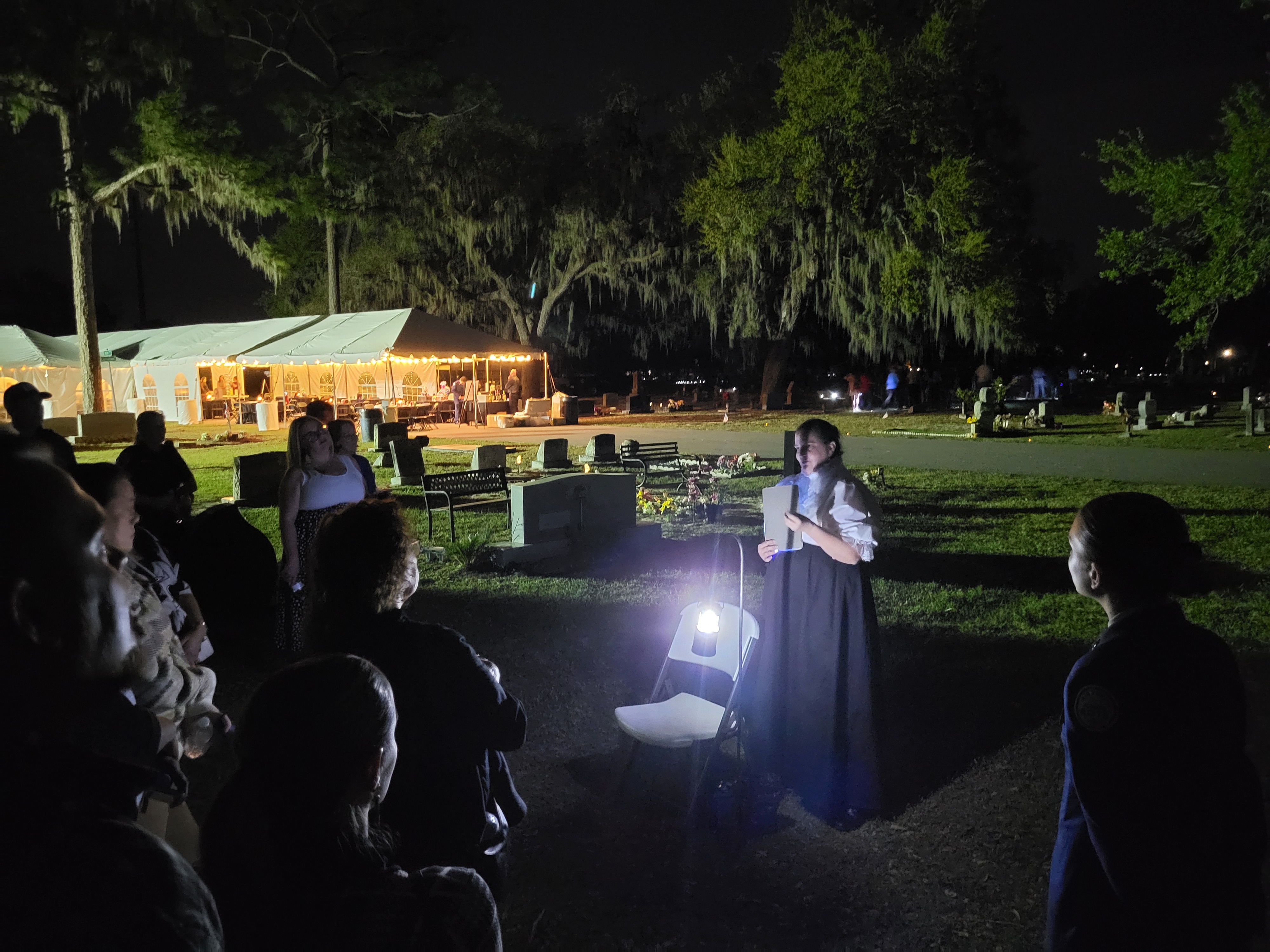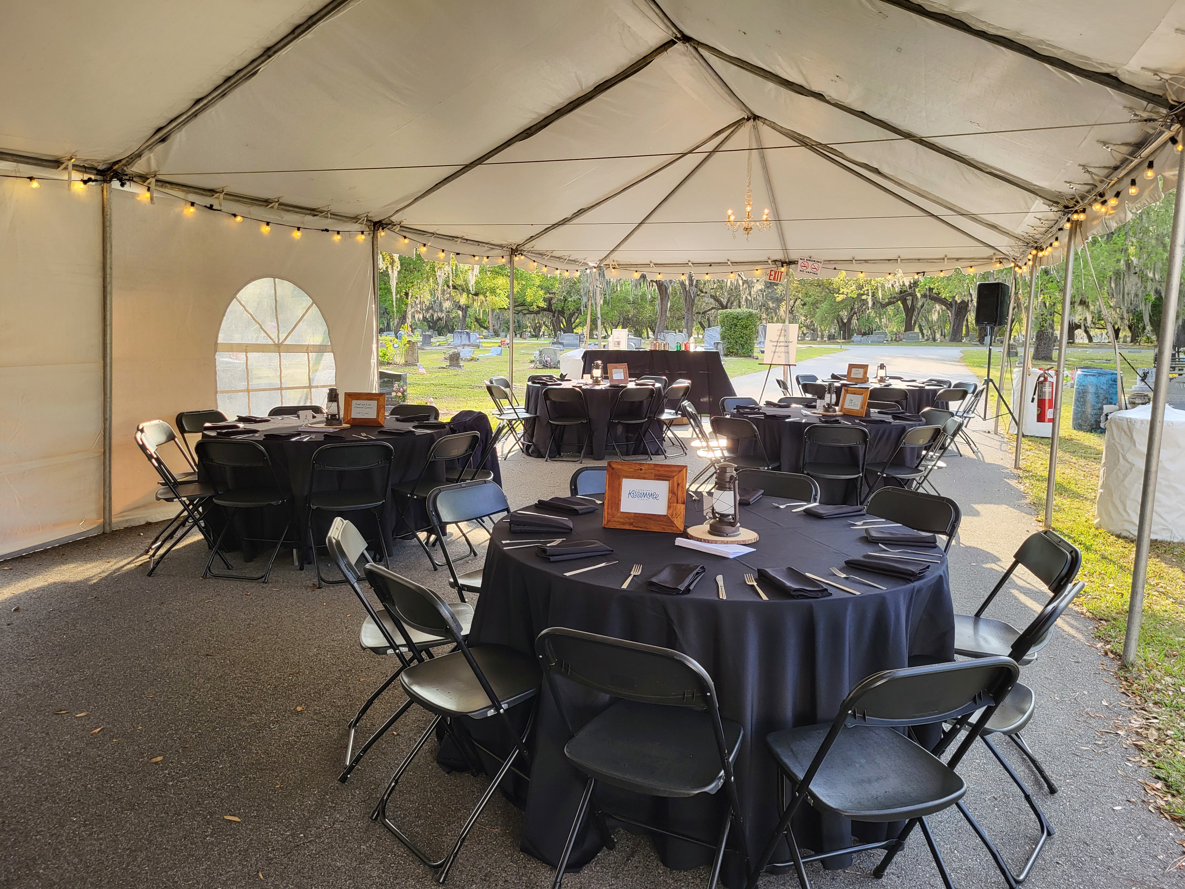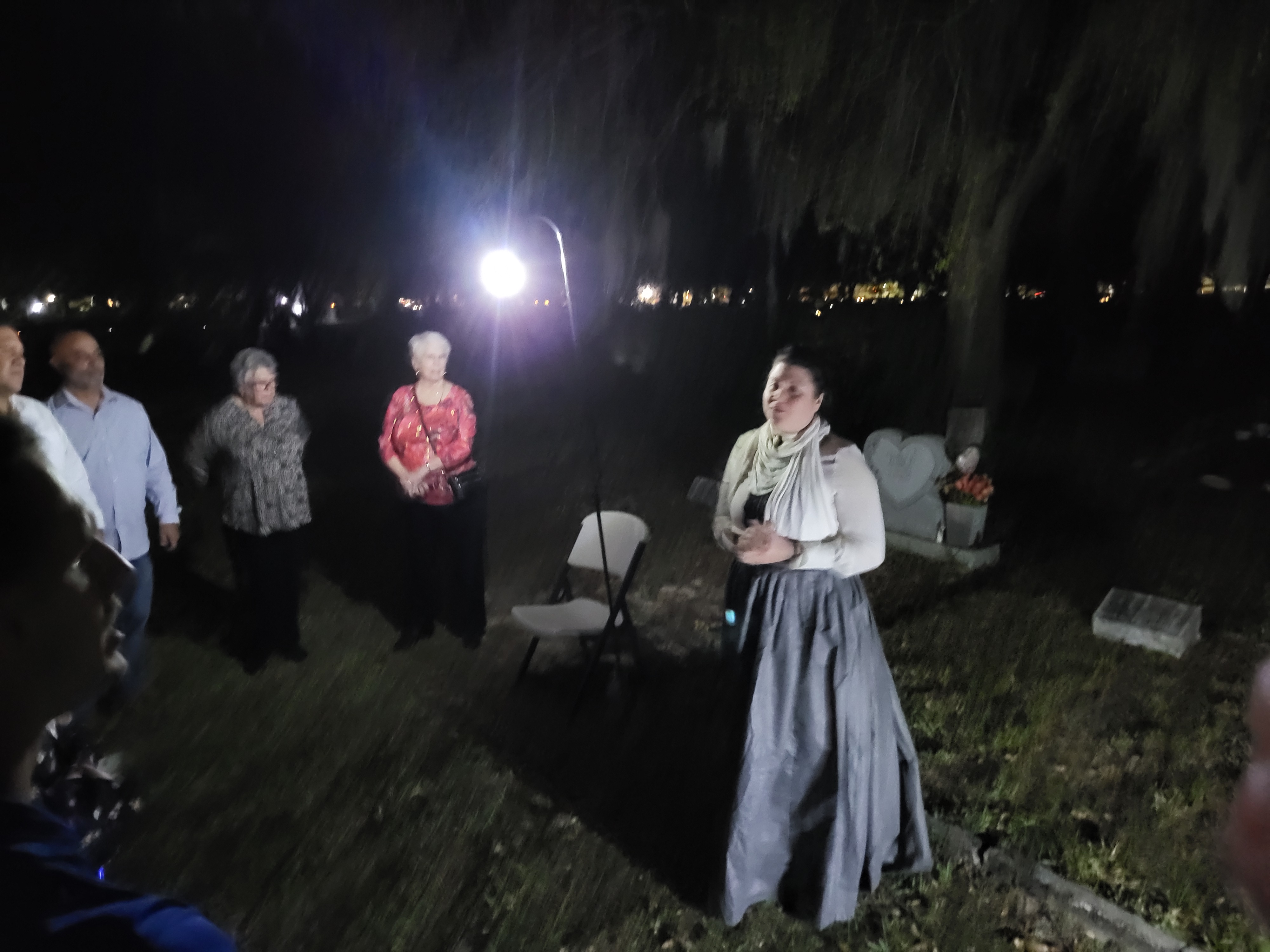 It is a catered dinner with multiple options for making financial donations to the Osceola County Historical Society. The event takes place in Rose Hill Cemetery, which is the historic cemetery in Kissimmee where many of the early settlers and pioneers from even before the county was formed (1897) are buried.
