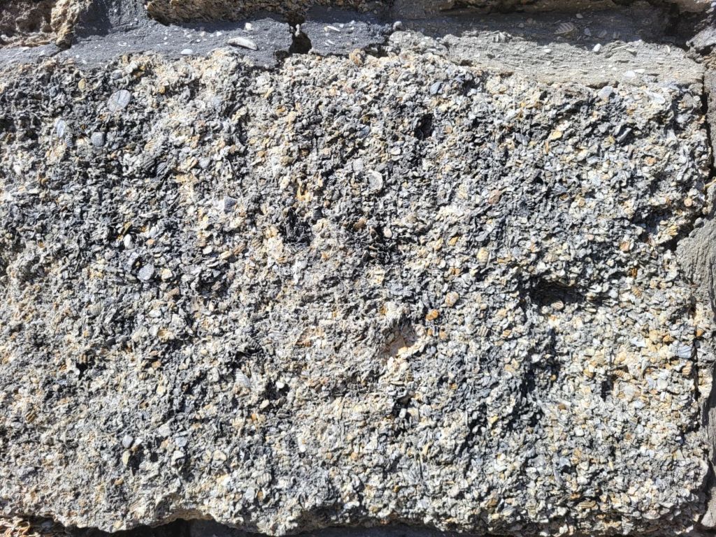 Both the Ravelin and the fort itself are constructed from blocks of Coquina limestone. This is a sedimentary rock composed of a bunch of compressed shells, illustrated in the photo below. It turns out that this rock is very good for forts because it simply absorbs the impact of cannonballs and doesn’t come apart.