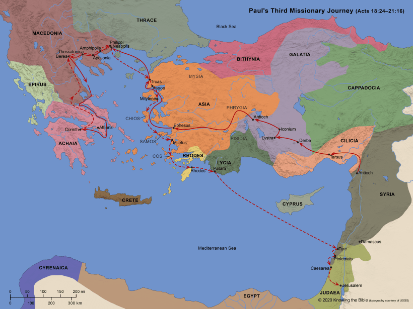 While there, he received from the church the financial gift they had prepared for the believers in Jerusalem and Paul (and company) are now preparing to leave Corinth and make their way to Jerusalem. Luke gives us the description of this next phase in Paul’s travels to complete his third missionary journey starting in Acts 20:3.